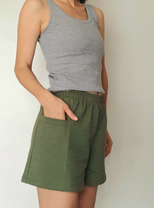 Es tiro alto, con elástico de 4cm de ancho en la cintura y bolsillos laterales amplios.