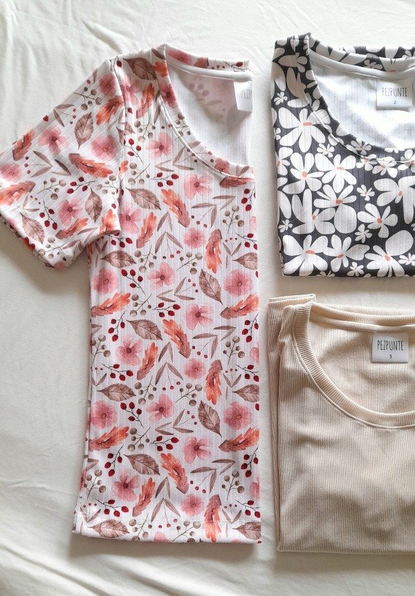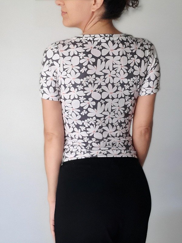 Camiseta de morley elastizado estampado , con mangas CORTA y escote en U.