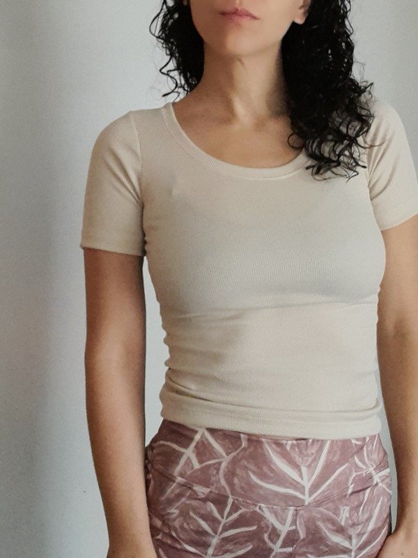 Camiseta de morley elastizado lisa , con mangas CORTA y escote en U.