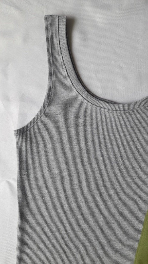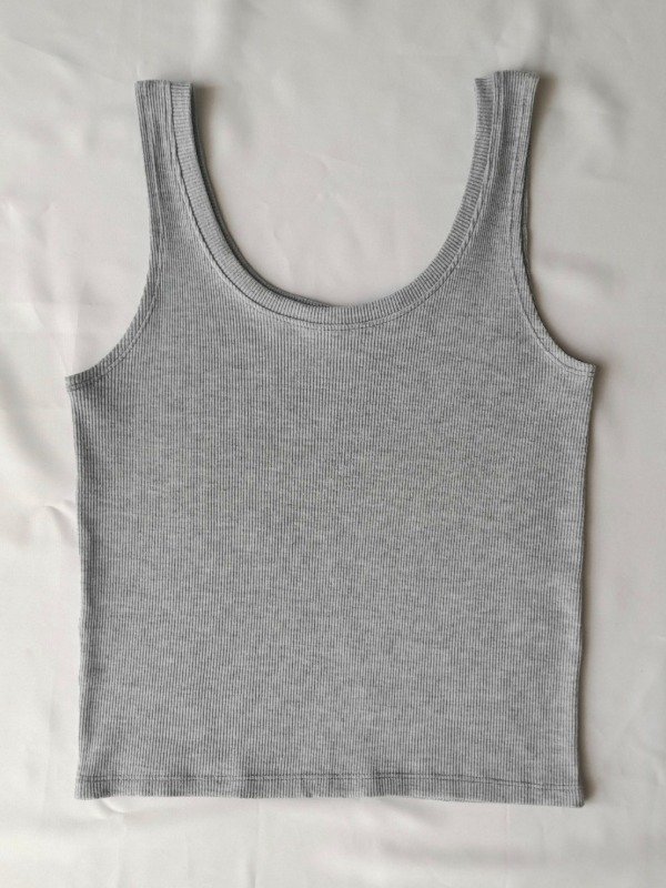 Musculosa de morley gris melange, con escote en U en delantera y espalda.