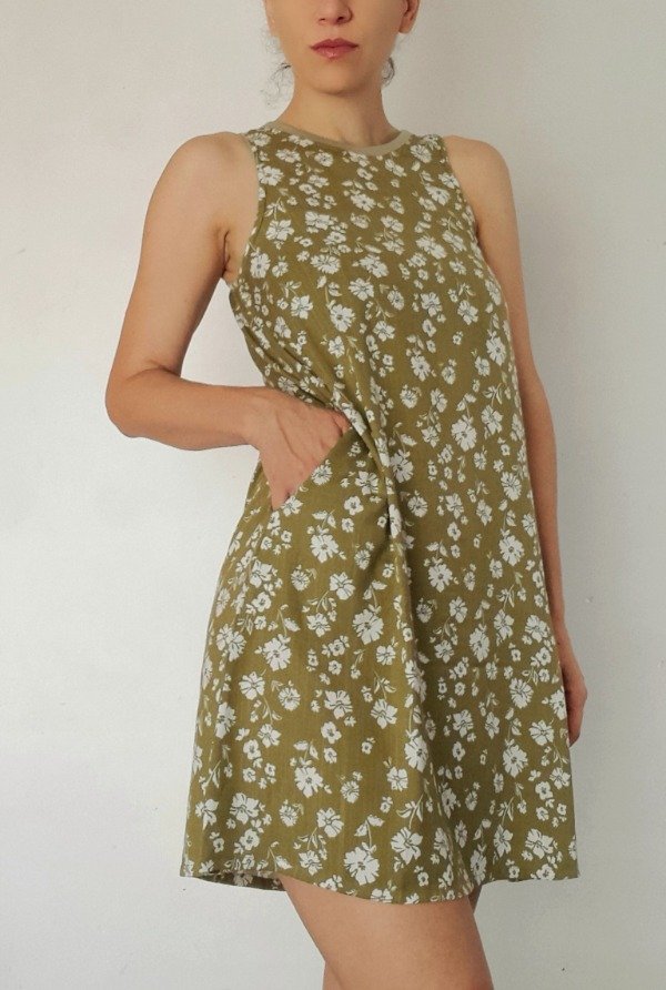 Vestido holgado con bolsillos escondidos y corte evasé.
